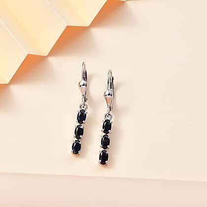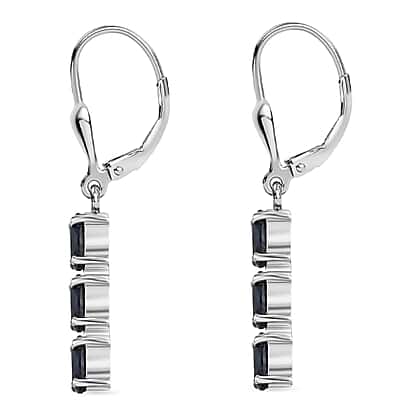 Midnight Sapphire Solitaire Lever Back Earring in rhodium Sterling Silver 1.68 ct 1.926 Ct.