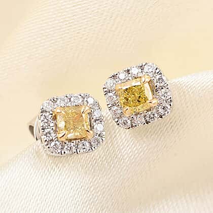 The radiance of Yellow and White Diamond Halo creates a visually stunning look for these earrings crafted in 14K Yellow and White Gold. The centre stone of the earrings, cushion-shaped yellow diamonds, look spectacular in a faceted cut that highlights their sun-kissed hues. The white diamond halo enhances the brilliance of the earrings.