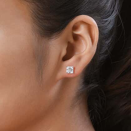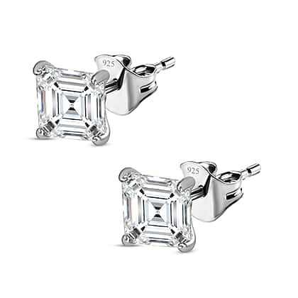 Moissanite (Asscher Cut) Stud Earrings (With Push Back) in Platinum Overlay Sterling Silver 2.25 Ct.