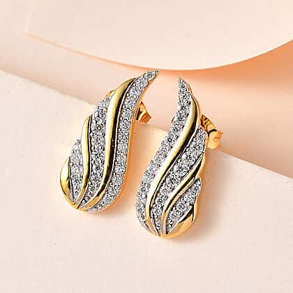 Moissanite Leaf Stud Earrings in 18K Yellow Gold Vermeil Plated Sterling Silver