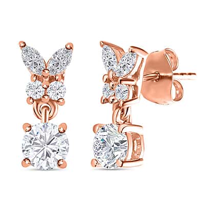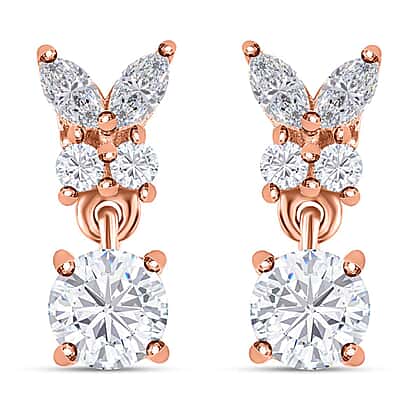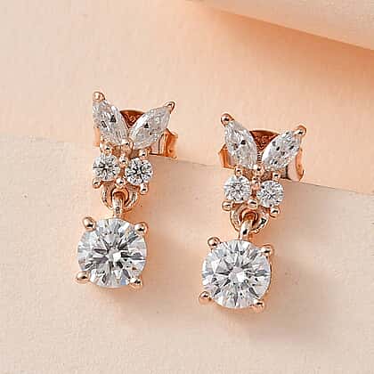 Moissanite Earrings in 18K Rose Gold Vermeil Plated Sterling Silver 1.33 Ct.