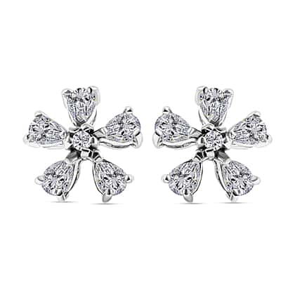 Fascinatingly alluring, these floral moissanite stud earrings adorn your ears and look. Five glistening gemstones are set on each stud, giving bright sparkle and shine. Resembling the petals of a flower, the detailed metalwork in 925 sterling silver with a rhodium overlay looks stunning. You can wear these gorgeous studs all day long to elevate the look.