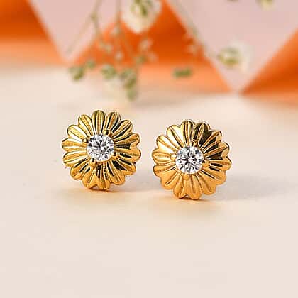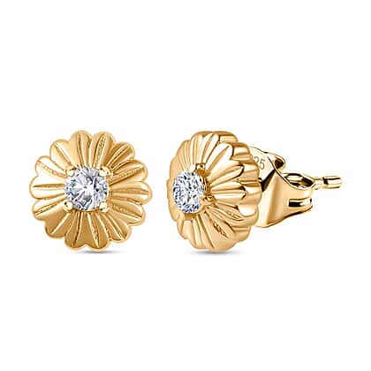 Moissanite Floral Stud Earrings in 18K YG Vermeil & Rhodium Plated Sterling Silver
