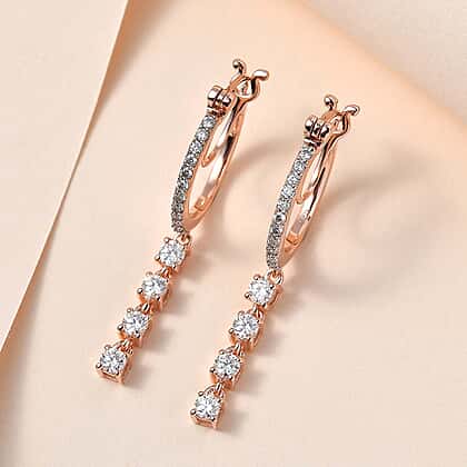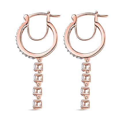 Moissanite J Hoop Half Hoop Earring in 18K Vermeil Rose Gold Plated Sterling Silver