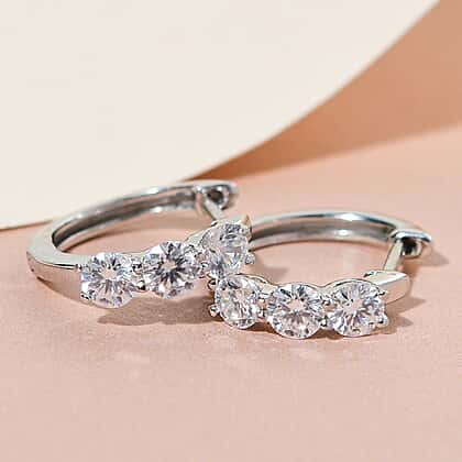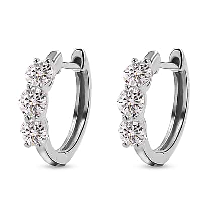 Moissanite Trilogy Hoop Earrings in Platinum Plated Sterling Silver
