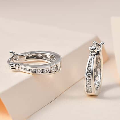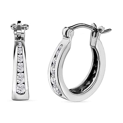 Moissanite Hoop Earrings in Platinum Overlay Sterling Silver, Silver Wt. 5.26 Gms
