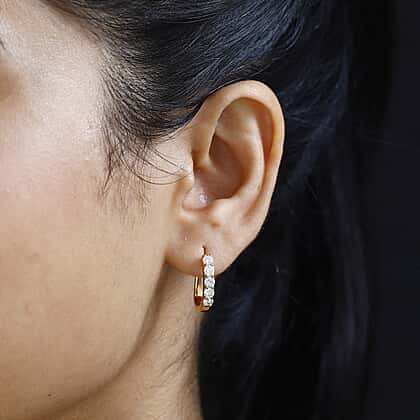 Moissanite J Hoop Earrings in 18K Vermeil Yellow Gold Plated Sterling Silver 1.00 Ct.