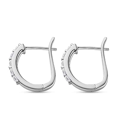 GRA Certified - Moissanite J Hoop Earrings in Platinum Overlay Sterling Silver 1.00 Ct.