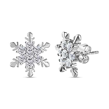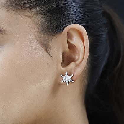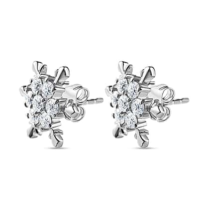Moissanite Snowflake Stud Earrings in Platinum Overlay Sterling Silver 1.55 Ct.