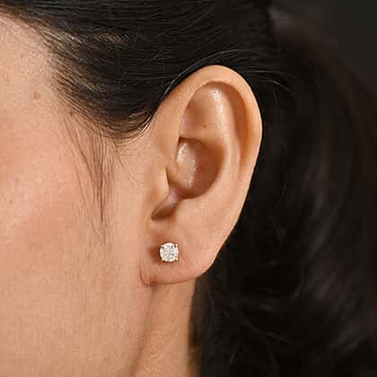 Moissanite Solitaire Stud Earring with Screw Back in 18K Vermeil Yellow Gold Plated Sterling Silver