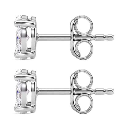 Upgrade your stud game with these moissanite earrings. Crafted in platinum overlay sterling silver, the design pairs square geometry with the elongated elegance of marquise-cut moissanites. The contrast between the sharp square form and the curvy marquise facets adds depth, dimension, and a high-fashion sensibility. The cool-toned metal further enhances the icy brilliance of the moissanite. These studs come with the butterfly push-back closure ensures effortless, everyday wearability.