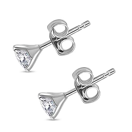 Moissanite Stud Earrings in Rhodium Overlay Sterling Silver