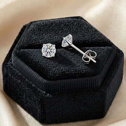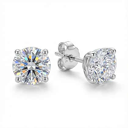 Moissanite Stud Earrings with Push Back in Platinum Overlay Sterling Silver