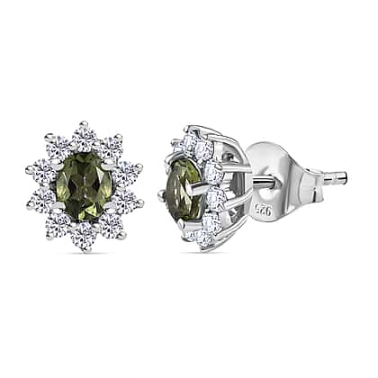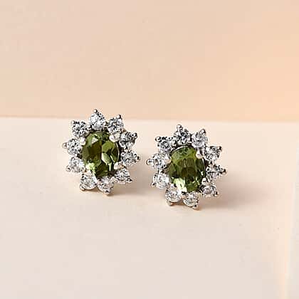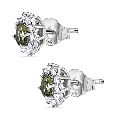 Moldavite & Natural Zircon Stud Earrings in Platinum Overlay Sterling Silver 1.16 Ct.