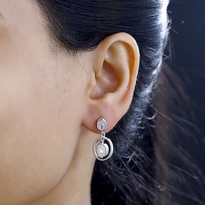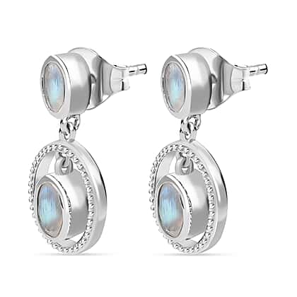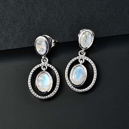 Moon Glow Moonstone Dangle Earrings in Rhodium Overlay Sterling Silver 2.28 Ct