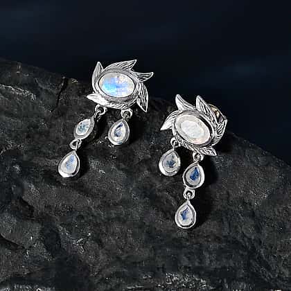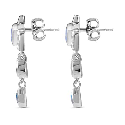 Moon Glow Moonstone Dangle Earrings in Rhodium Overlay Sterling Silver 2.40 Ct