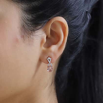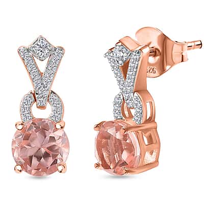 Morganite Color Quartz & Natural Zircon Earrings in 18K Rose Gold Vermeil Plated Sterling Silver 3.48 Ct.