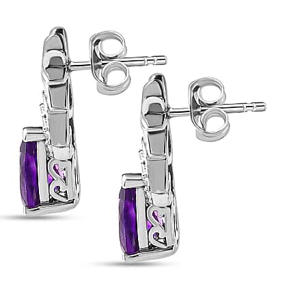 Moroccan Amethyst & Natural Zircon Tear Drop Earrings in Platinum Overlay Sterling Silver 2.26 Ct.