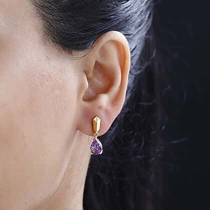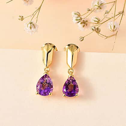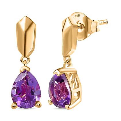 Moroccan Amethyst Solitaire Dangle Earrings in 18K Yellow Gold Vermeil Plated Sterling Silver 2.00 Ct