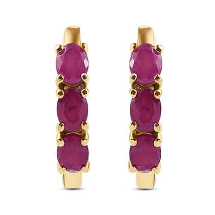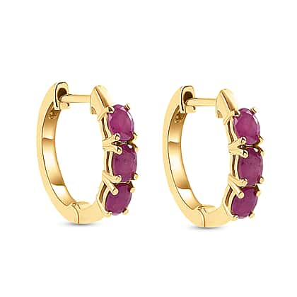 Moroccan Ruby Hoop Earrings in 14K Gold Overlay Sterling Silver 1.23 Ct.