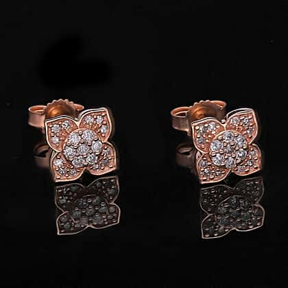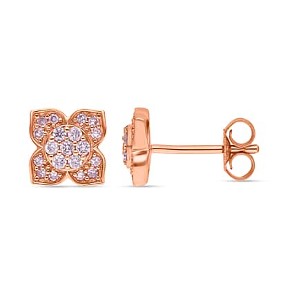 9K Rose Gold Pink Diamond Floral Stud Earrings 0.30 Ct