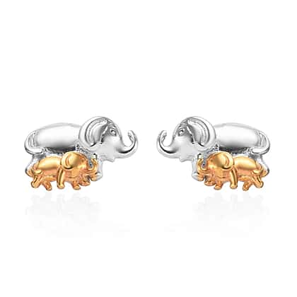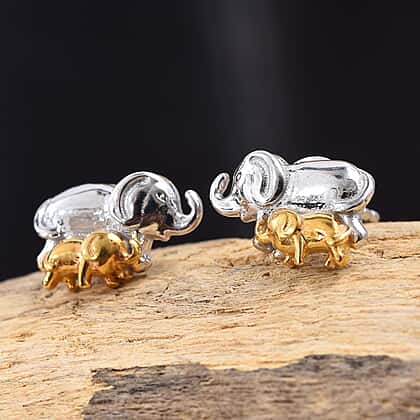 Mother and Baby Elephant Earrings in Platinum and Yellow Gold Overlay Sterling Silver (with Push Back)