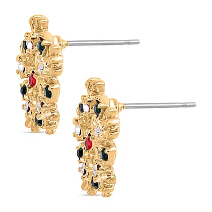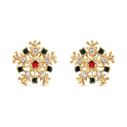 Multi Colour Crystal Snowflake Earrings in Goldtone