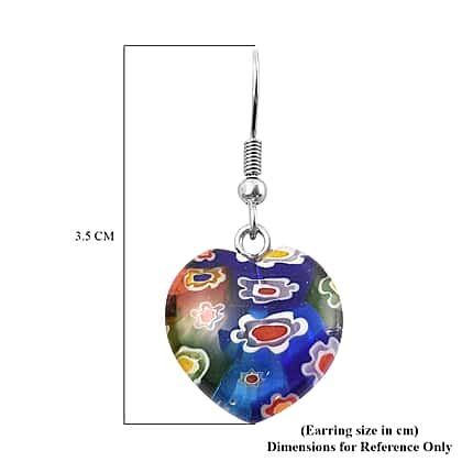 Multi Coloured Murano Style Glass Heart Drop Earrings in Silver Tone