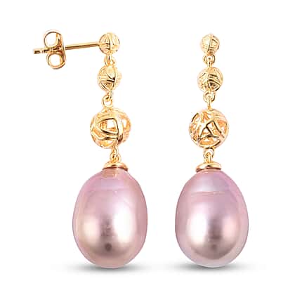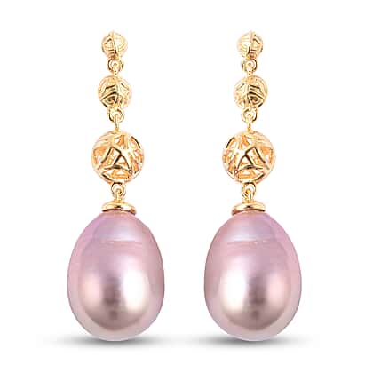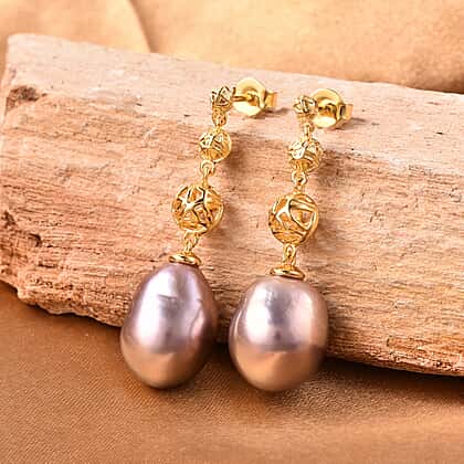 10-14mm Multi Coloured Edison Pearl Lattice Ball Drop Earrings in Gold Plated Sterling Silver