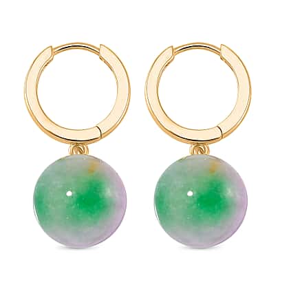 Multi Colour Jade Earring with Clasp in Gold Overlay Sterling Silver 28.00 Ct.