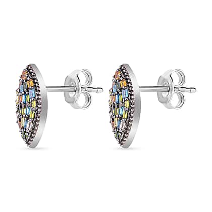 Get fashion-ready with these exquisite Blue Diamond and Multi-Gemstone Earrings in Platinum Overlay Sterling Silver. The stunning blue diamonds, nestled among vibrant multi-gemstones, create a mesmerising play of vibrant colours. The magical design, coupled with the luxurious finish of platinum overlay, makes these earrings suitable for both formal events and casual affairs, ensuring you stand out in any outfit.