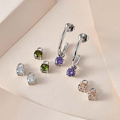 Echangeable Multi-Gemstone Hoop Earrings in Platinum Overlay Sterling Silver 6.78 Ct.