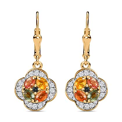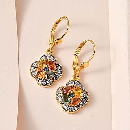 Multi Sapphire & Natural Zircon Earrings in 18K Vermeill YG Plated Sterling Silver 2.82 Ct