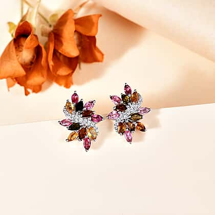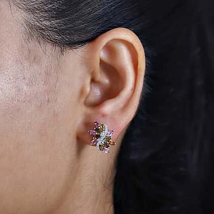 - Cluster earrings studded with 24 Multi Tourmalines, measuring 4x2mm in Faceted Cut