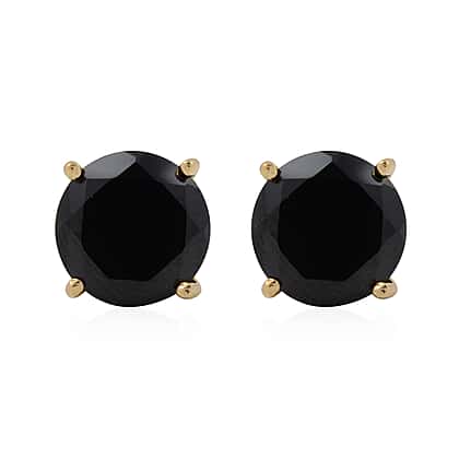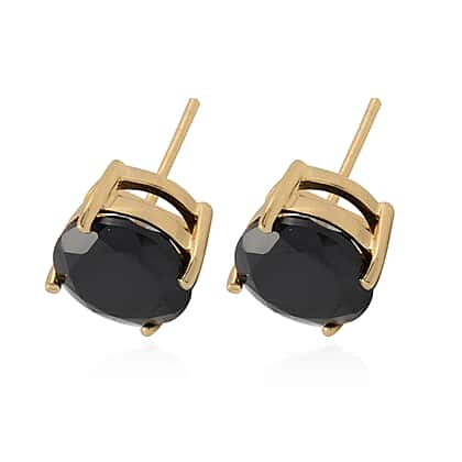 9 Carat Natural Boi Ploi Black Spinel Solitaire Stud Earrings in Gold Plated Silver