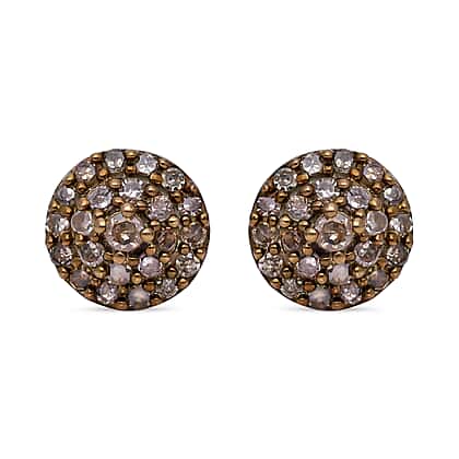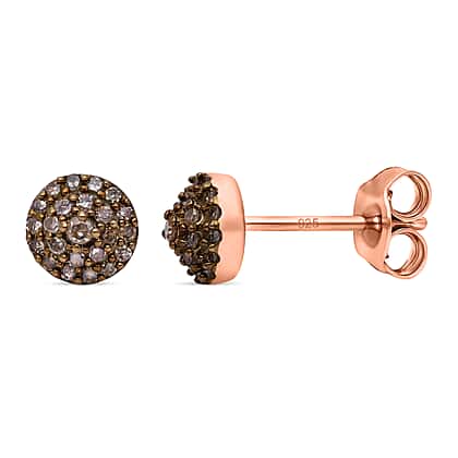 Natural Champagne Diamond Stud Earrings in Vermeil Rose Gold Plated Sterling Silver 0.25 Ct.