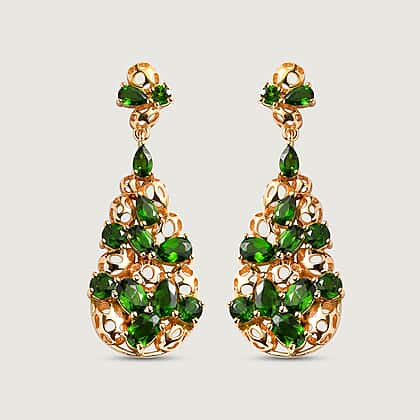 Natural Chrome Diopside Earring in 18K Vermeil Yellow Gold Sterling Silver 9.94 ct, Silver Wt. 9.18 Gms 9.940 Ct.