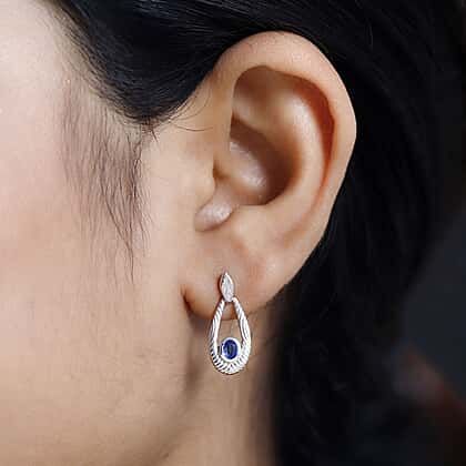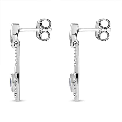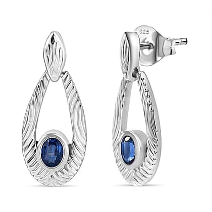Natural Himalayan Kyanite Dangle Solitaire Earrings in Platinum Overlay Sterling Silver