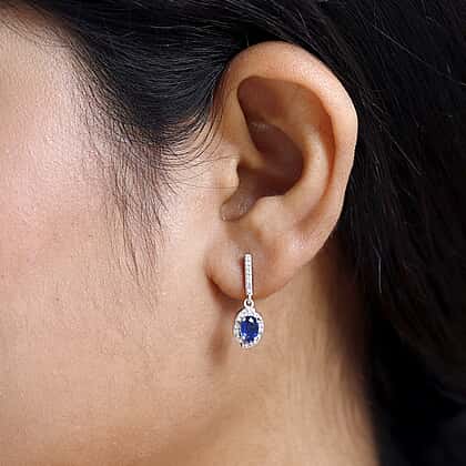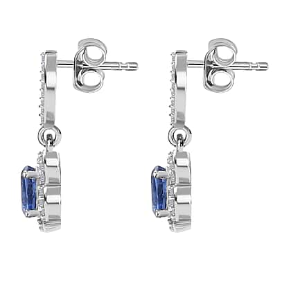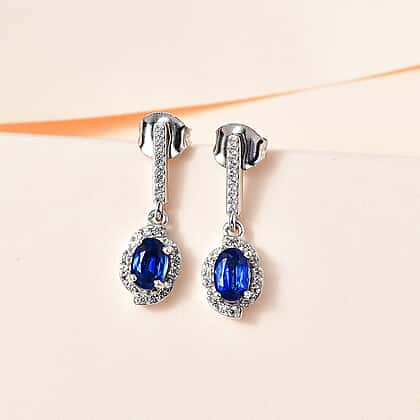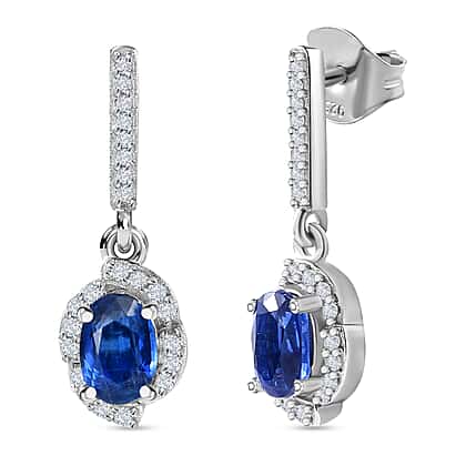 Natural Himalayan Kyanite & Natural Zircon Earrings in Platinum Overlay Sterling Silver 1.60 Ct.