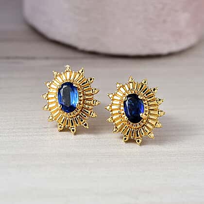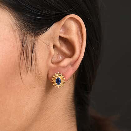 Unveil the charm of this sunburst-inspired Kashmir kyanite stud earring, a perfect touch of beauty for your jewellery collection. Featuring a captivating blue natural kashmir kyanite gemstone at the heart of the piece, complemented by a gold-tone sunburst design. Exclusively crafted in 925 sterling silver in yellow gold plating, this piece ensures a shine and polished finish. The striking gold finish makes the stud perfect for adding a pop of colour and warm to any outfit. The hypoallergenic properties of the metal make the earring safe and secure for sensitive skin. Ideal for everyday wear, special occasions, or gifting, this bold jewellery piece transforms your outfit.