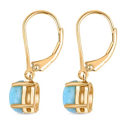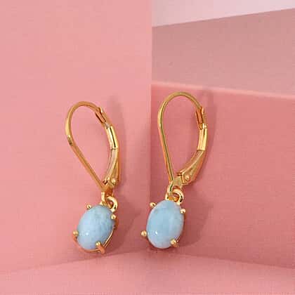 Natural Larimar Earrings with Lever Backs in Gold Overlay Sterling Silver 1.87 Ct.
