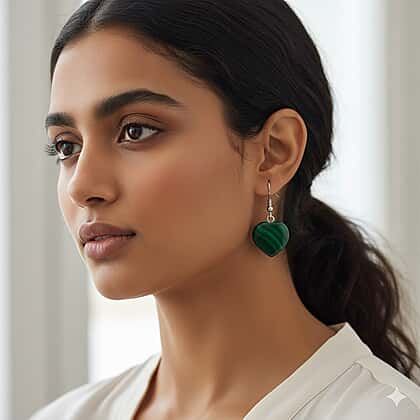 Every love story is remarkable and should be celebrated in an unique way. These Natural Malachite Heart earrings can translate your story into exquisite reality. These heart-shaped dangling earring is made with green gemstones that feature a unique patterning. No Malachite stone is the same!This is what makes these earrings a masterpiece in itself. It also is popularly known as the 'stone of transformation', it is believed to absorb negative energies from the wearer's body and the environment around them. These cut charms feature a fish-hook back that helps to add a stylish touch to the design.
