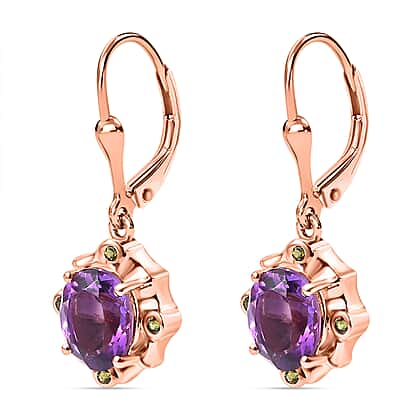 Natural Rose De Morocco, Natural Chrome Diopside Solitaire Lever Back Earring With Lever Back in 18K Vermeil Rose Gold Plated 3.58 Ct.