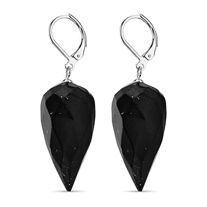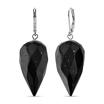 Natural Shungite Faceted Drop Earrings with Lever Back 65.00 Ct.