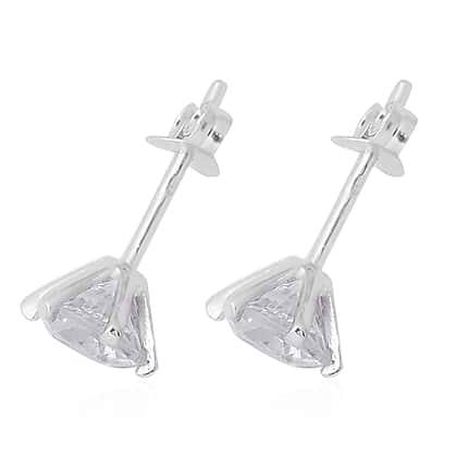 Tanzanian White Zircon Solitaire Stud Earrings in Rhodium Plated Sterling Silver