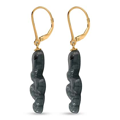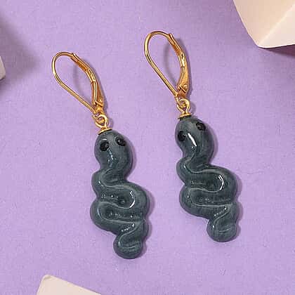 Natural Type A Jadeite & Black Spinel Earring in Yellow Gold Plated Sterling Silver 14.50 Ct.