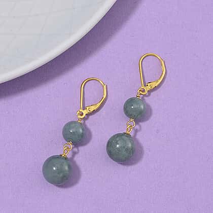 Natural Type A Jadeite Earring with Lever Back in Yellow Gold Plated Sterling Silver 23.00 Ct.