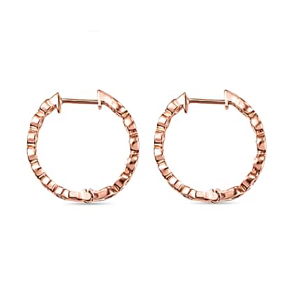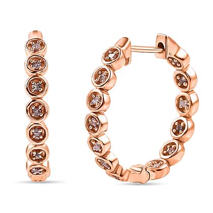 Dive into elegance and beauty with these beautiful pink diamond hoop earrings. It is crafted from 925 sterling silver with vermeil rose gold overlay to add more sparkle and shine. These beautiful hoop earrings in an inside-out pattern feature pink diamonds, secured in a prong setting. These captivating earrings are light in weight and come with a hinge hoop clasp to secure the fit around your earlobe. Stack your earring collection with these designer hoop earrings and sprinkle the charm.