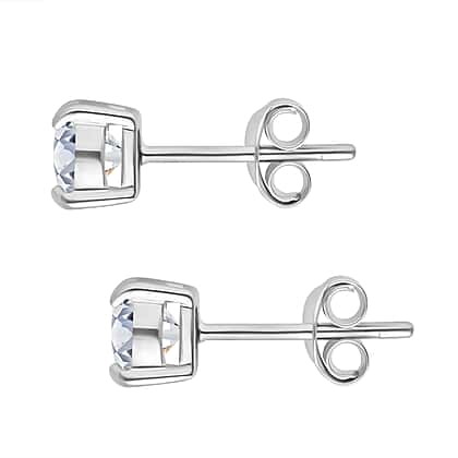 Natural White Cambodian Zircon (Rnd) Stud Earrings in Sterling Silver. Total Wt 1.00 Cts