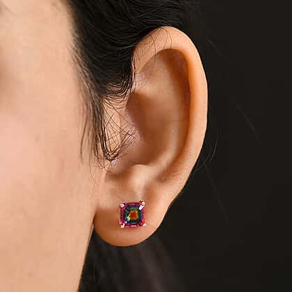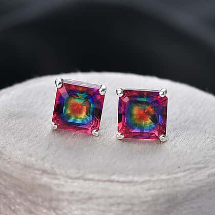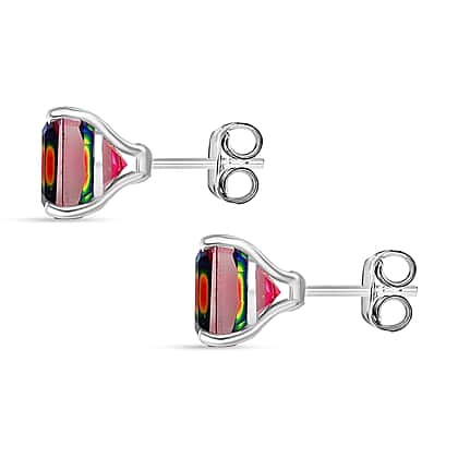 Nebula Quartz Doublet Solitaire Stud Push Post Earring in Platinum Overlay Sterling Silver 4.19 Ct.